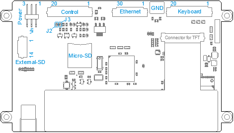 USB 2.0 / 1 x RS232 3.3V / I2C / SPI / Ethernet with optional board |